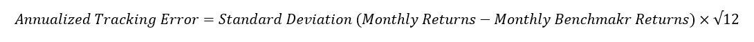 Annualized Tracking Error, also known as Active Risk, is the annualized standard deviation of the excess return to the benchmark.