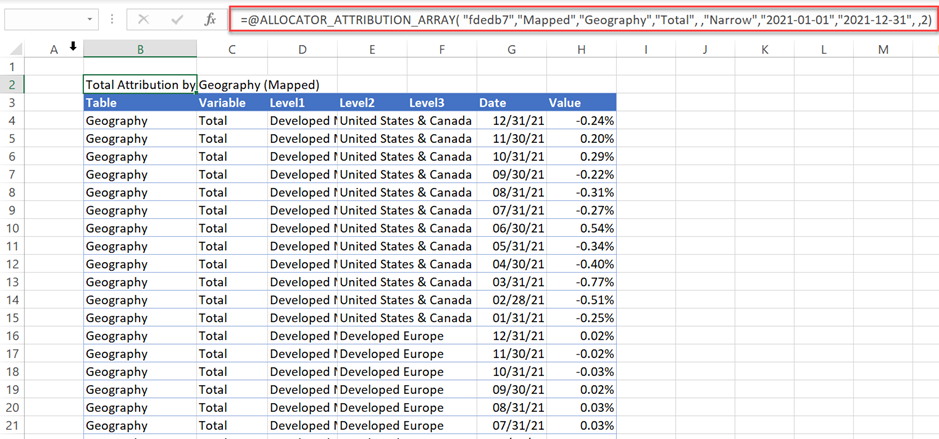 =ALLOCATOR_ATTRIBUTION_ARRAY( [Text] ID, [Text] Categorization, [Text] Table, [Text] Variable, [Text] Category, [Text] Mode, [Date] Start Date, [Date] End Date, [Text] Include Funds, [Text] Level, [Text] Trim)